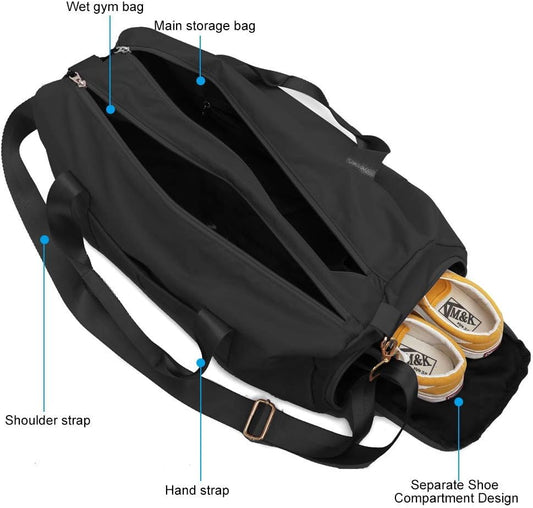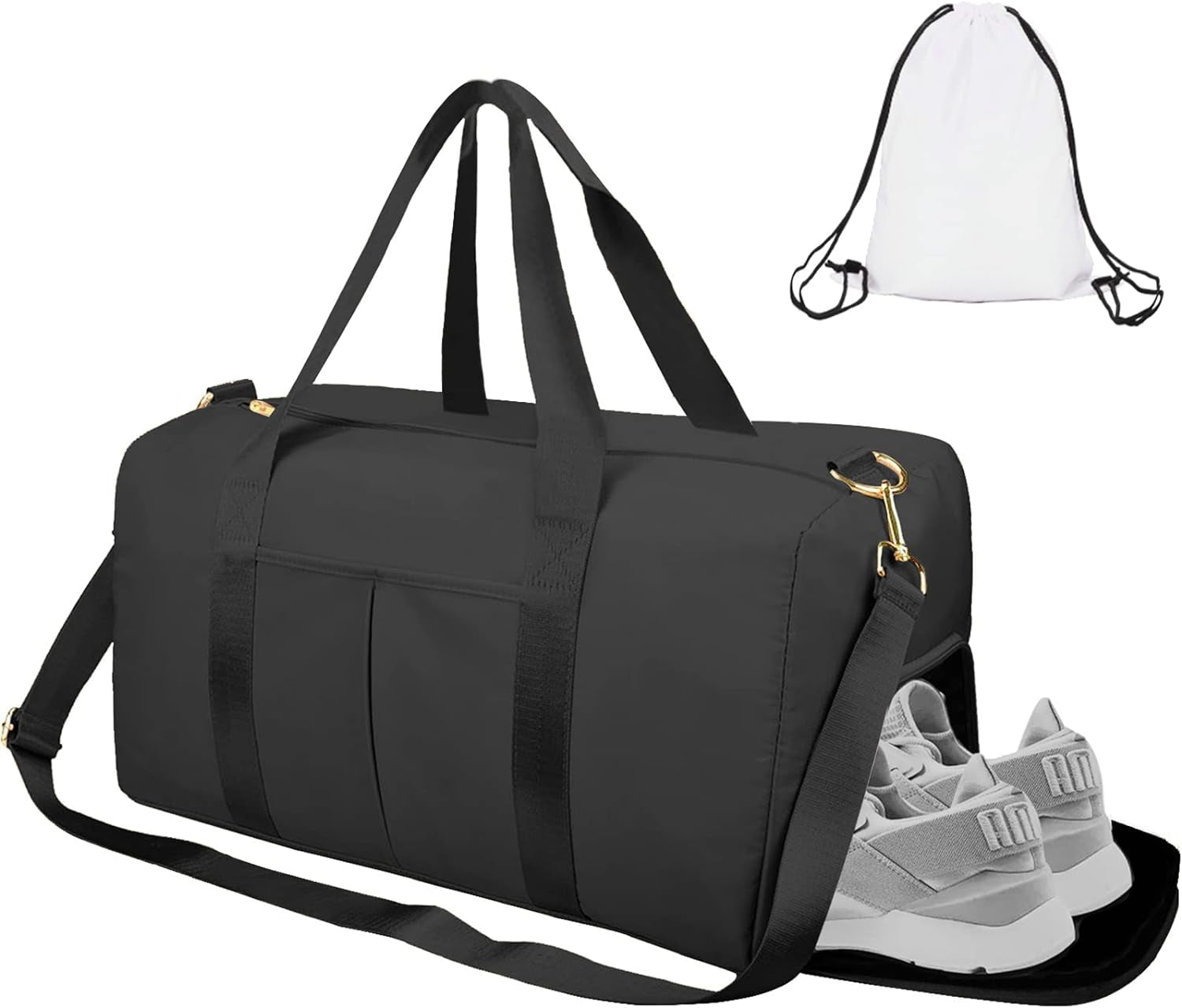 Gym Duffle Bag Dry Wet Separated Gym Bag Sport Duffle Bag Training Handbag Yoga Bag with Extra Drawstring Backpack (Black) Large